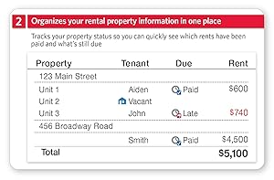 Pros: Ties to financial. Allows entry of all tenant information for contact and lease terms. Cons: Would be better if the tenant was also then listed as a payee so you would not get two different entries for one tenant when you do an entry in the checkbook vs running it thru the rental program which only allows for entry of rents. You cannot enter a payment for garbage for example. Any entry causes the rent due date to advance so you will be entering rent on 11/5/2016 for example and the default will come up 2/2017 for example. Recommendations to other buyers: This product is good for a FEW rentals where you know all that is happening. When tracking multiple the dates and auto accounting entries have to be watched very carefully.